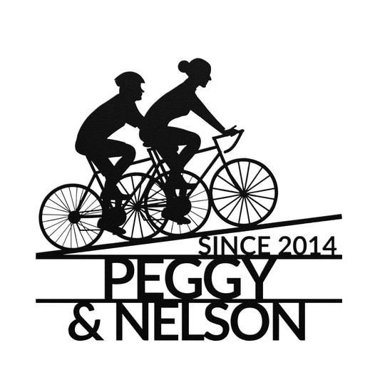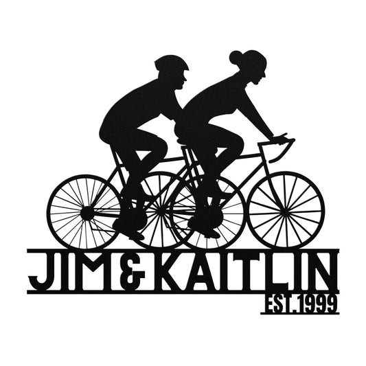 Custom Cyclist Couple Metal Wall Art Sign Couple Mountain Bike Biker Anniversary Couple Wedding Gift Custom Bike Sign Cycling Gifts For Men