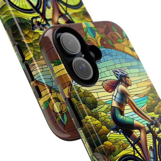 Female Cyclist Cycling Phone Case, Faux Stained Glass Cover For iPhone 16 15 14 13 Pro Samsung Pixel, Birthday Xmas Gift For Bicycle Lovers