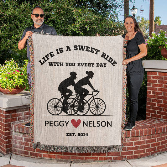 Personalized Life Is A Sweet Ride Cycling Couple Heirloom Woven Blanket