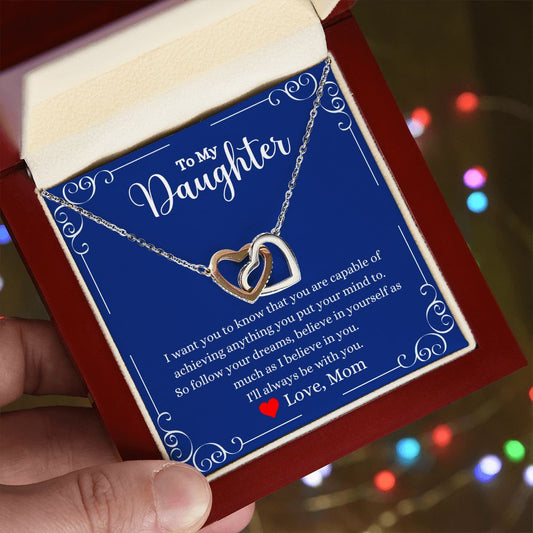 I Will Always Be With You Interlocking Hearts Necklace- Gift for Daughter from Mom