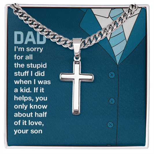 Dad- Sorry Stupid Stuff - Cross on Cuban Link Chain