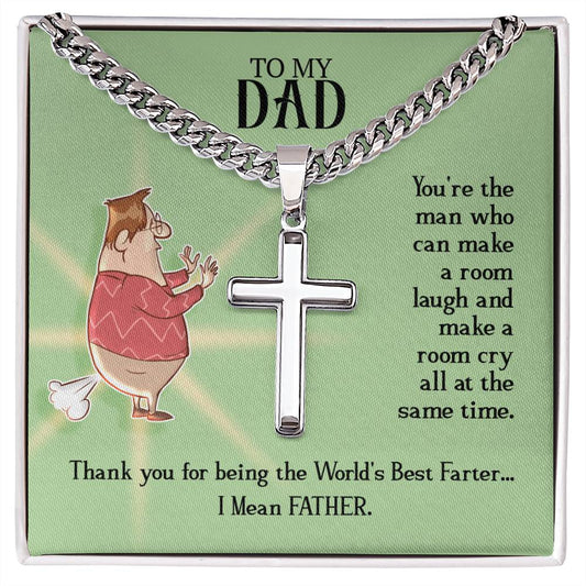 Dad- World Best Farter - Cross on Cuban Link Chain