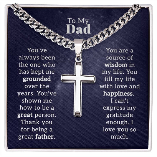 To Dad - Keep Me Grounded - Cross on Cuban Link Chain