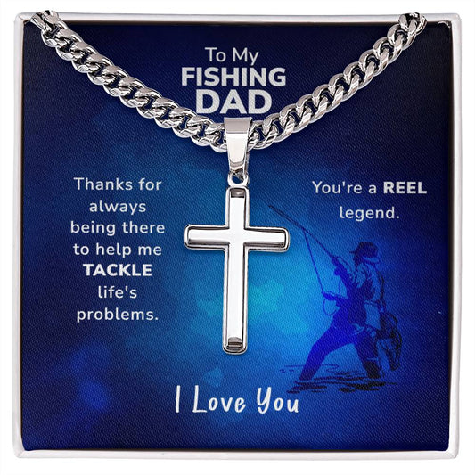 To Fishing Dad - You Are A Reel Legend - Cross on Cuban Link Chain