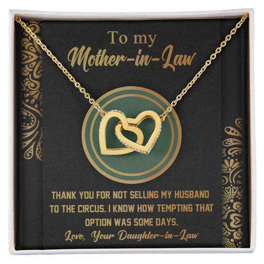 To Mother-In-Law, Thank You - Interlocking Hearts Necklace