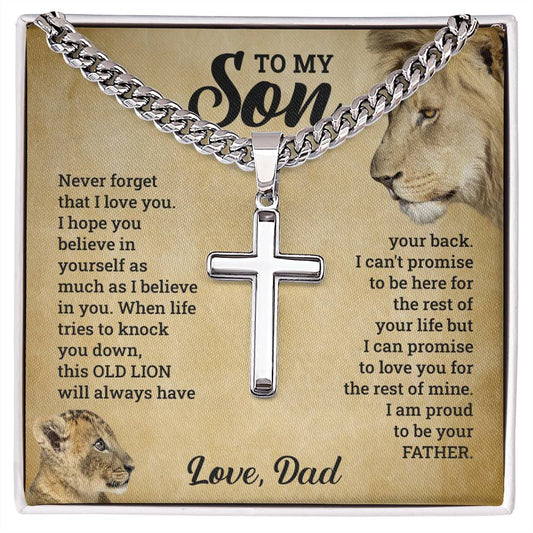 To My Son, This Old Lion Will Always Have Your Back - Cross on Cuban Link Chain