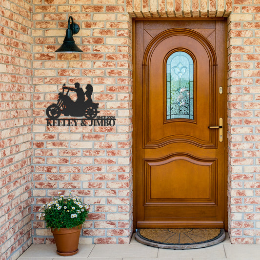 Custom Motorcycle Couple Metallic Wall Art