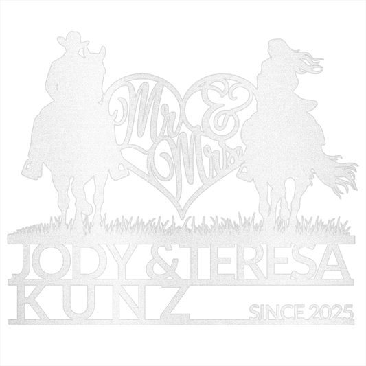 Personalized Mr & Mrs Horse Riding Metal Sign