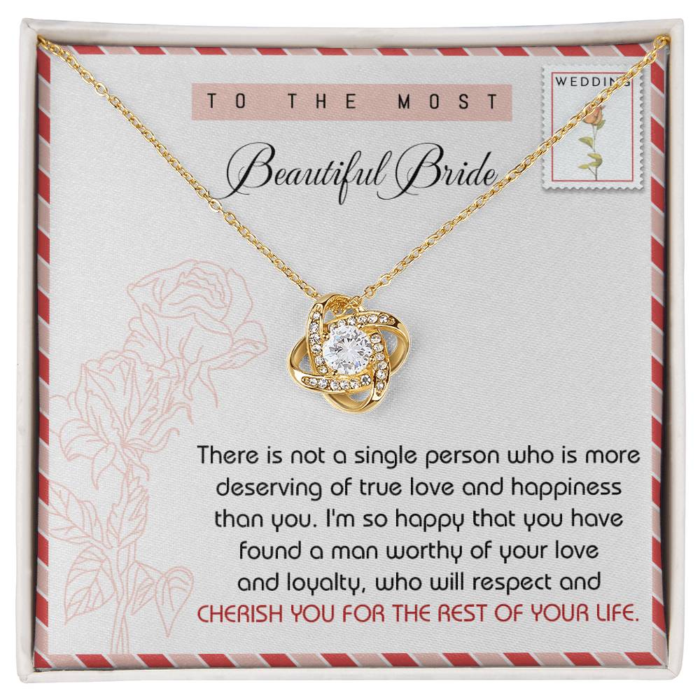 "TO THE MOST Beautiful Brides There is not a single person who is more deserving of true love and happiness than you. I'm so happy that you have found a man worthy of your love and loyalty, who will respect and CHERISH YOU FOR THE REST OF YOUR LIFE."