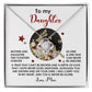 “To my Daughter MOTHER AND DAUGHTER, TIED TOGETHER FOREVER AS ONE, A LINK THAT CAN NEVER BE UNDONE. A TRUST THAT CAN'T BE BROKEN AND A DEPTH OF LOVE THAT I HOPE NEVER GOES UNSPOKEN. ALTHOUGH YOU ARE GROWN AND ON YOUR OWN, I WILL CARRY YOU IN MY HEART, AND YOU'LL NEVER BE ALONE. Love, Mom”