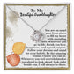 “To My Beautiful Granddaughter You are an angel sent from above to fill my heart with unending love. Wherever you go in life, I wish you love, happiness, and a good purpose. Follow your dreams and stand for your beliefs. Be the amazing woman I know you can be. Whenever you feel overwhelmed or too afraid to look ahead, look right beside you, I will always be there.”