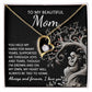 "TO MY BEAUTIFUL Mom YOU HELD MY HAND FOR MANY YEARS, SUPPORTED ME THROUGH JOYS AND TEARS. THOUGH I'M GROWN AND ON MY OWN, MY HEART WILL ALWAYS BE TIED TO HOME. Always and forever. I love you"