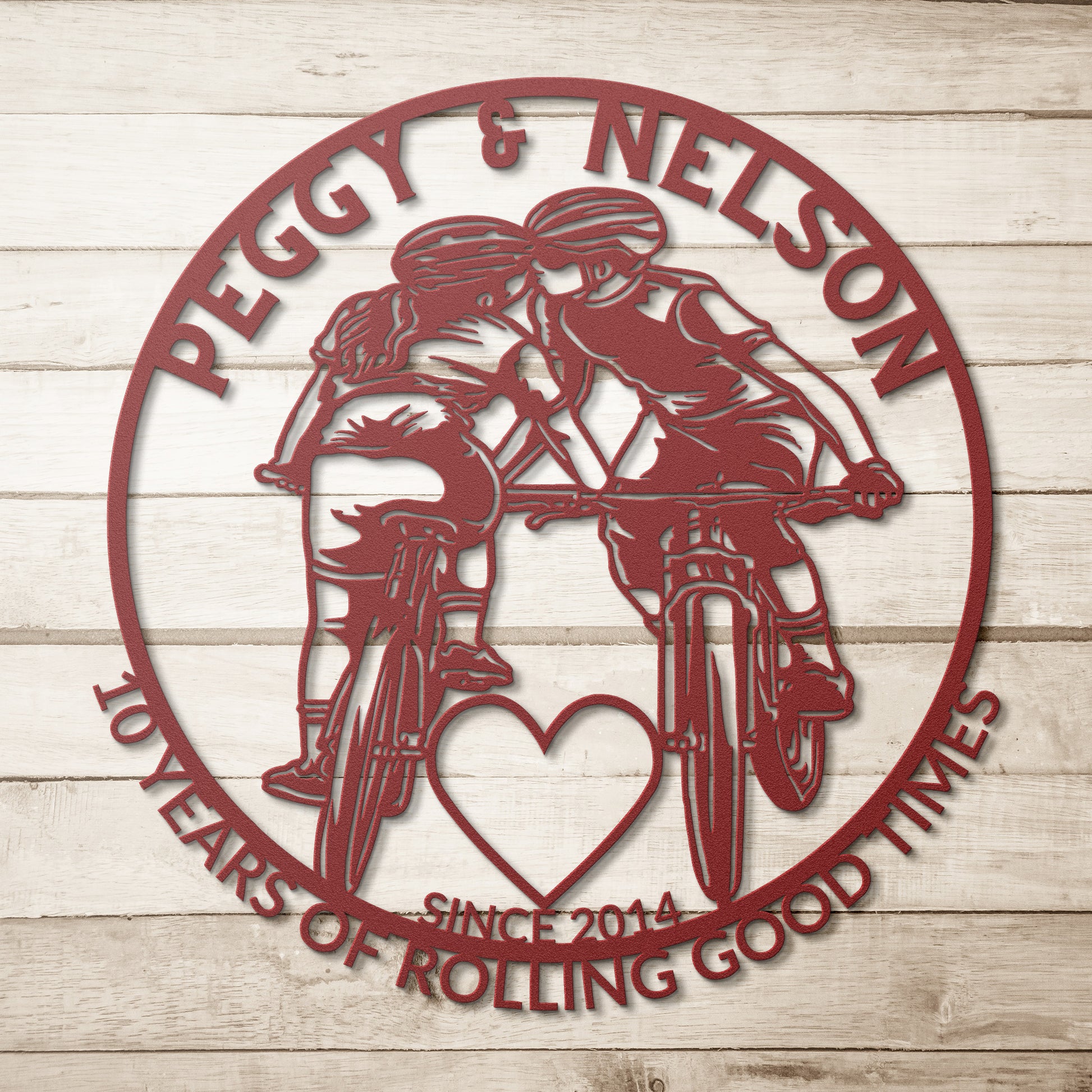 Expertly crafted from high-quality metal, this unique couple metal sign is customizable with the cyclist couple's names, established year, and number of years together, also making it an ideal cyclist anniversary keepsake.