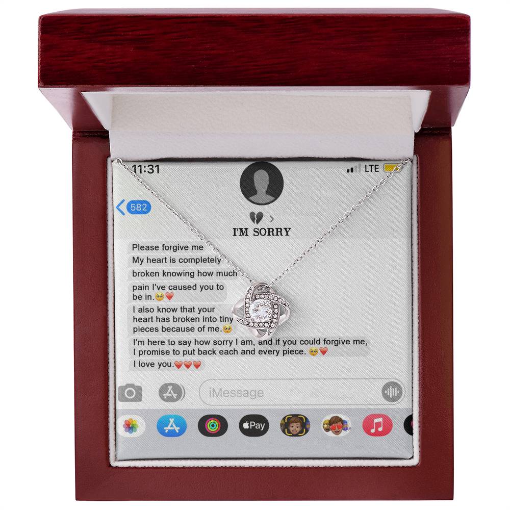 “I'M SORRY Please forgive me My heart is completely broken knowing how much pain I've caused you to be in. I also know that your heart has broken into tiny pieces because of me. I'm here to say how sorry I am, and if you could forgive me, I promise to put back each and every piece. I love you.”