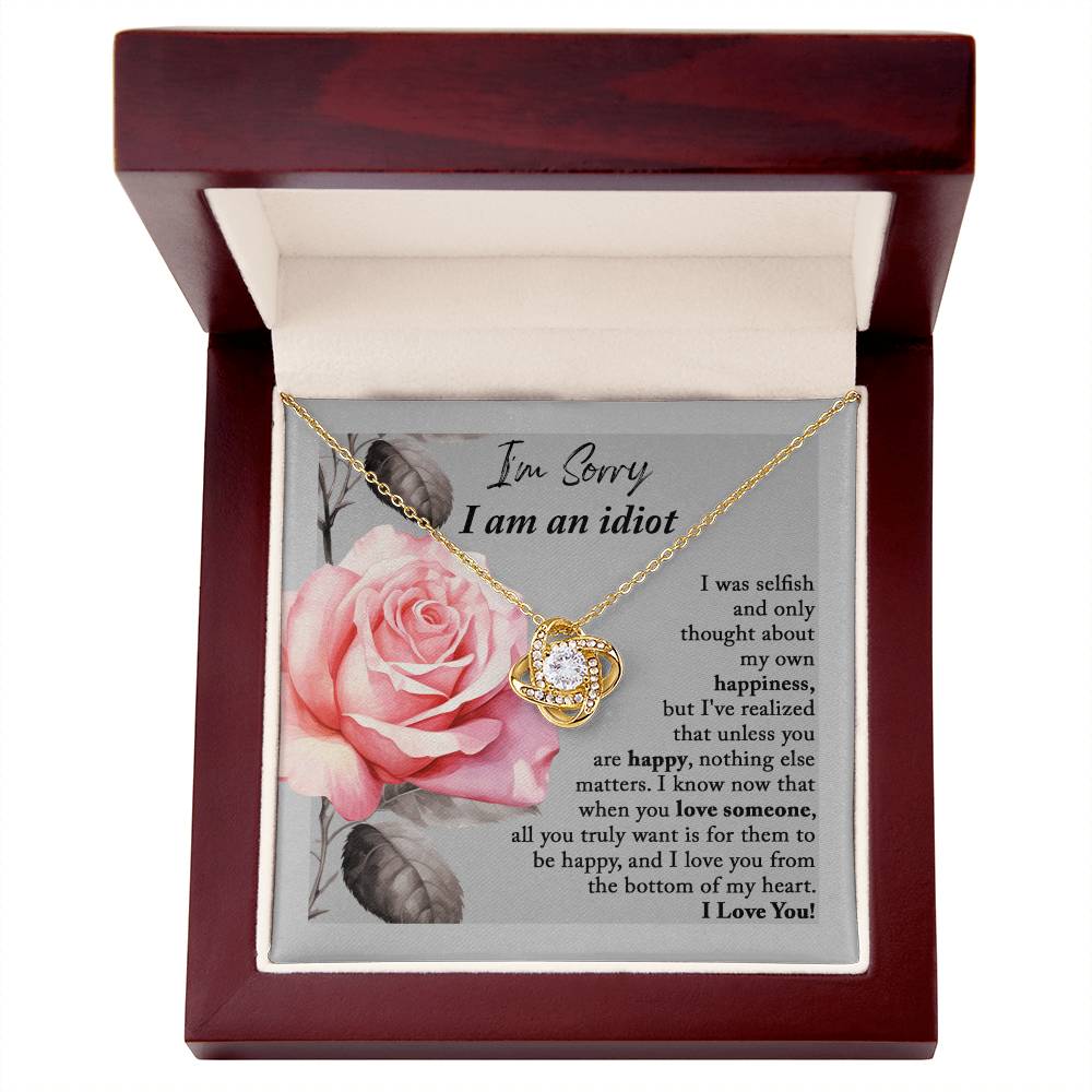 "I'm Sorry I am an idiot I was selfish and only thought about my own happiness, but I've realized that unless you are happy, nothing else matters. I know now that when you love someone, all you truly want is for them to be happy, and I love you from the bottom of my heart. I Love You!