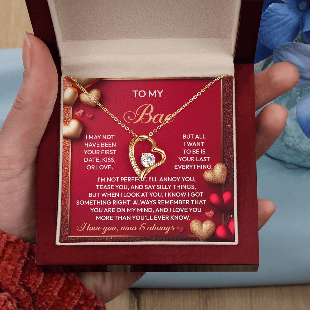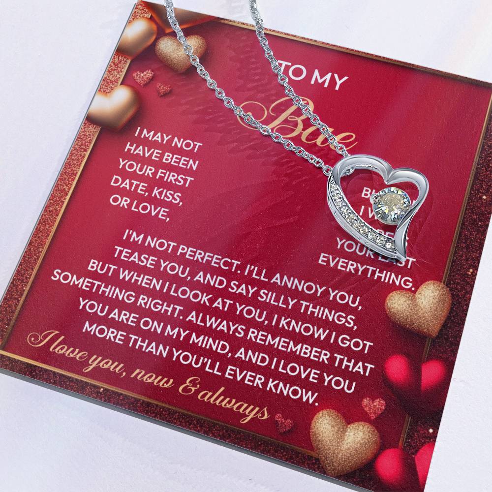 The dazzling Forever Love Necklace is sure to make her heart melt! This necklace features a stunning 6.5mm CZ crystal surrounded by a polished heart pendant embellished with smaller crystals to add extra sparkle and shine. Beautifully crafted with either a white gold or yellow gold finish, be sure to give her a classic gift she can enjoy everyday.