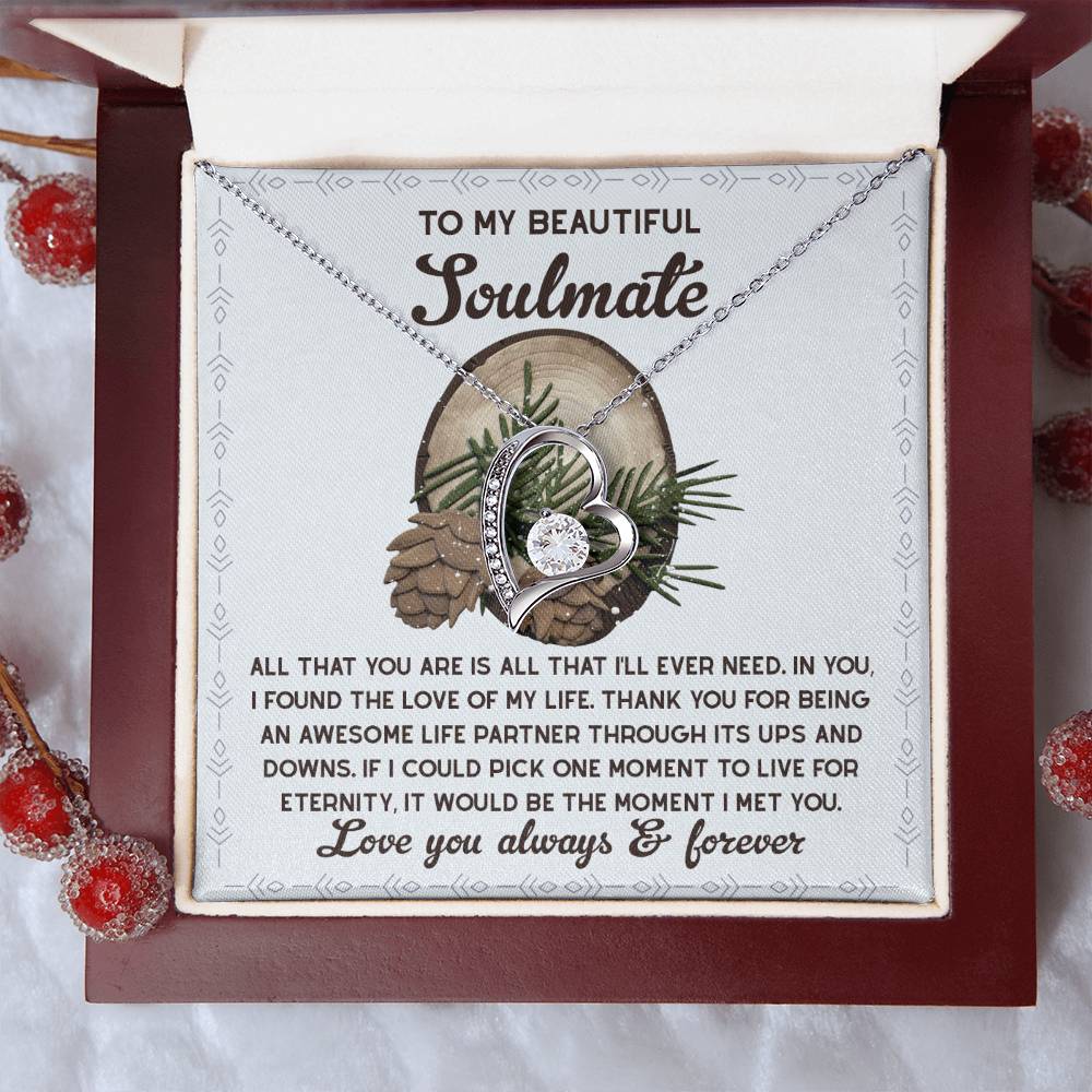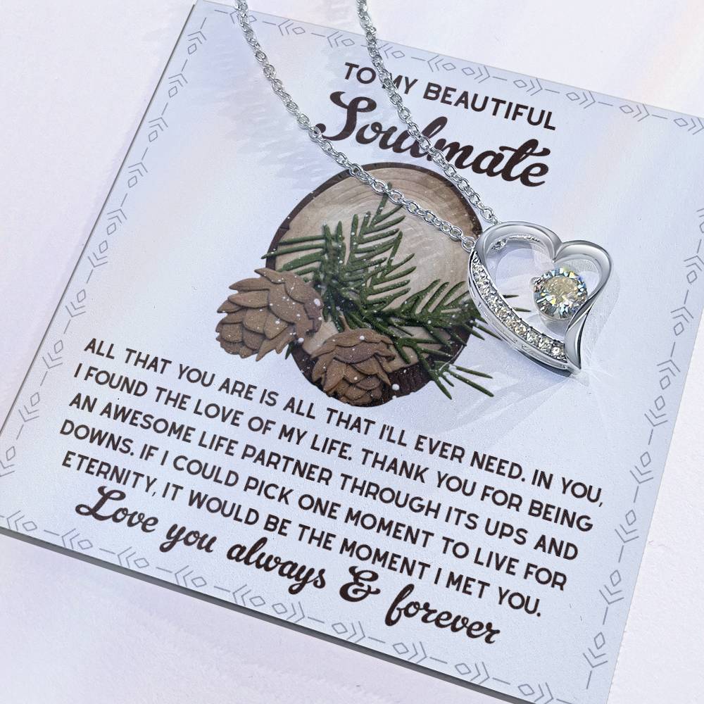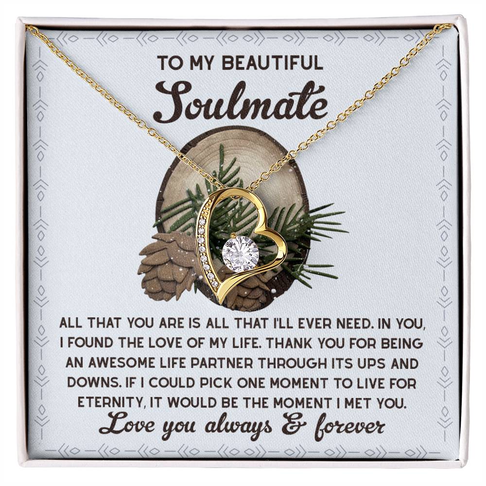 "TO MY BEAUTIFUL Soulmate ALL THAT YOU ARE IS ALL THAT I'LL EVER NEED. IN YOU, I FOUND THE LOVE OF MY LIFE. THANK YOU FOR BEING AN AWESOME LIFE PARTNER THROUGH ITS UPS AND DOWNS. IF I COULD PICK ONE MOMENT TO LIVE FOR ETERNITY, IT WOULD BE THE MOMENT I MET YOU. Love you always & forever"