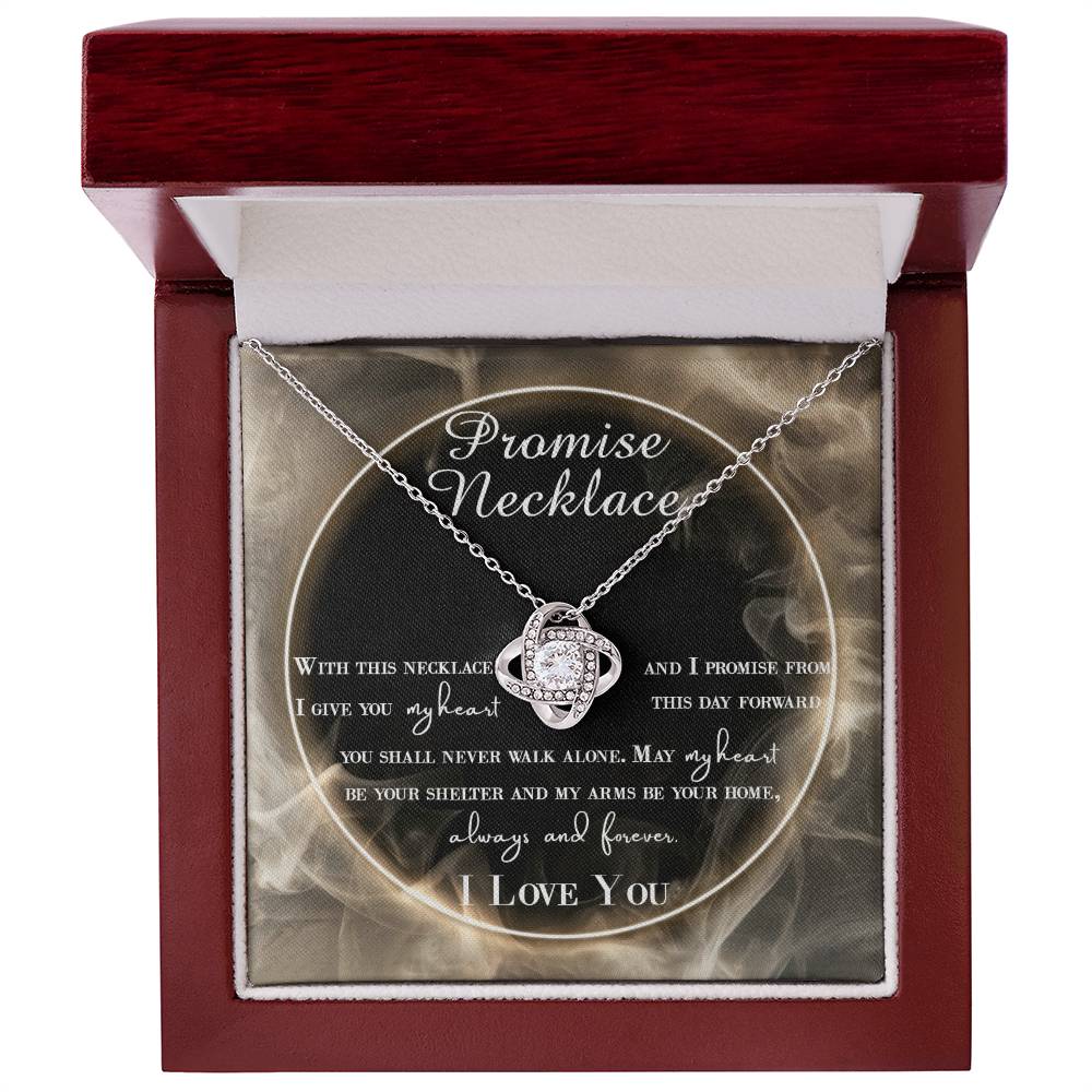 "Promise Necklace WITH THIS NECKLACE I GIVE YOU myheart AND I PROMISE FROM THIS DAY FORWARD YOU SHALL NEVER WAK ALONE. MAY myheart BE YOUR SHELTER AND MY ARMS BE YOUR HOME, always and forever. I LOVE YOU"